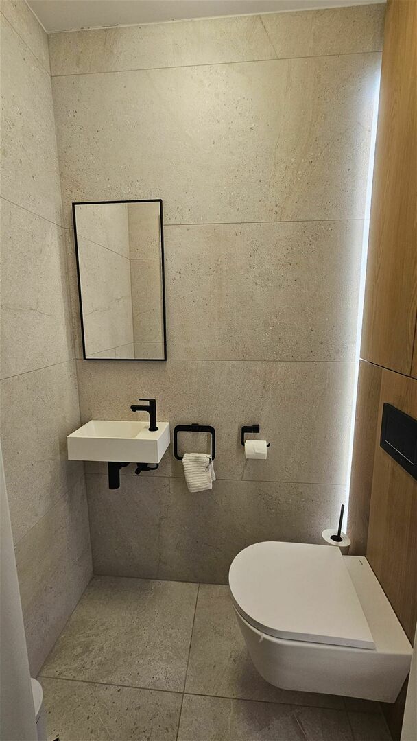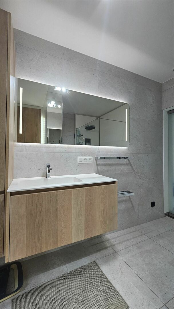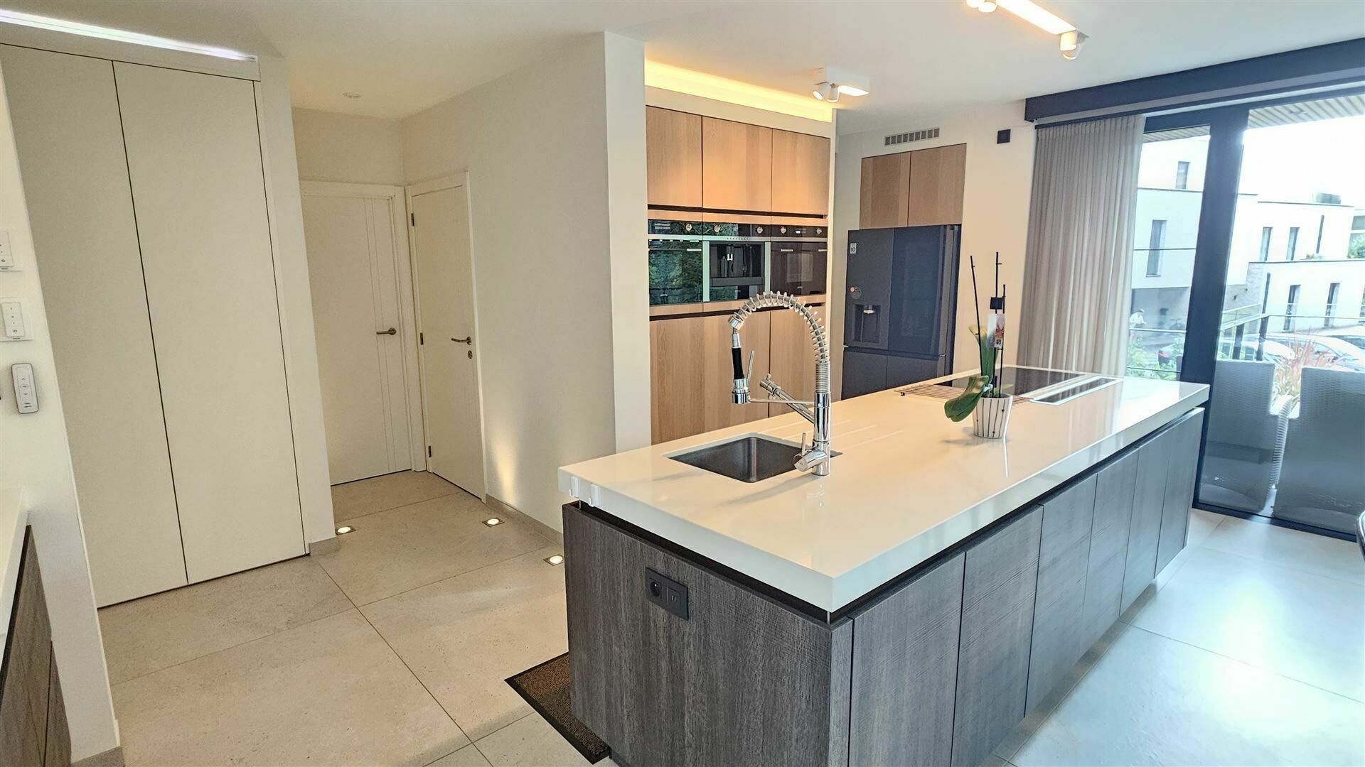 Indeling: inkomhal, WC, living met open keuken en aansluiting op de terrassen, berging, bureau/slaapkamer 2 . Dressing, badkamer en slaapkamer 1.
